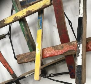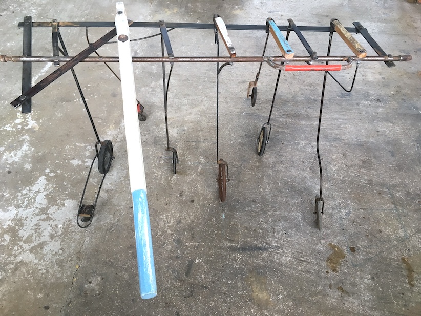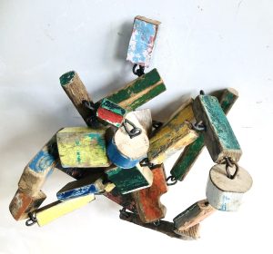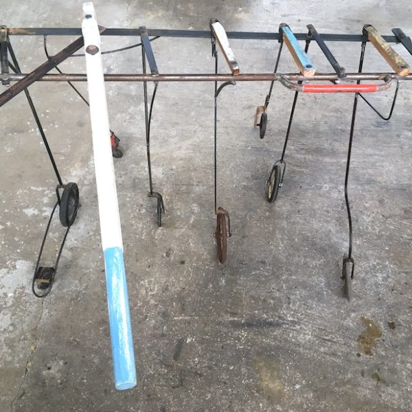 Bois de bateaux, métal, roulettes diverses130 x 75 x 110 cm – 2020